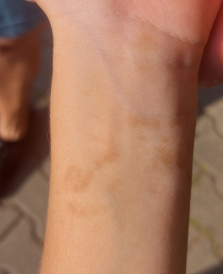 Dobrý den, děkuji za dotaz, ale nemyslím si, že se jedná o reakci na Melatonin tbl. Spíše se jedná o pigmentaci po aplikaci lokálního externa na kůži. Myslím, že do několika týdnů zcela zmizí.